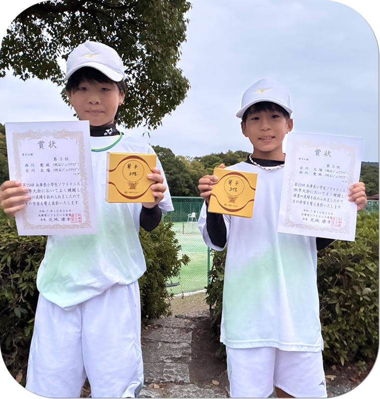 令和7年度 兵庫県小学生秋季大会 2025年10月28日 最終更新日時 : 2025年10月28日 小学生連盟2 2025.10.25 小学生男子 071025man 小学生女子 071025wom 男 女 入 賞 者 男子第1位 女子第1位 男子第2位 女子第2位 男子第3位 女子第3位 男子第4位 女子第4位