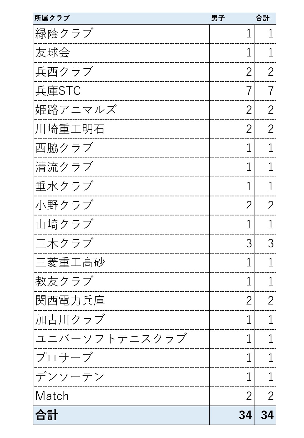 【団体別エントリー一覧】兵庫県シングルス選手権大会