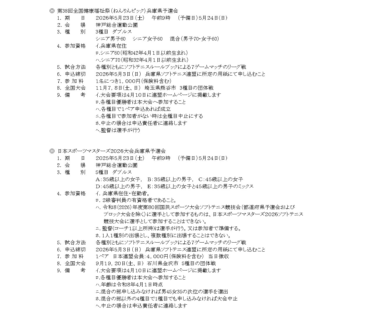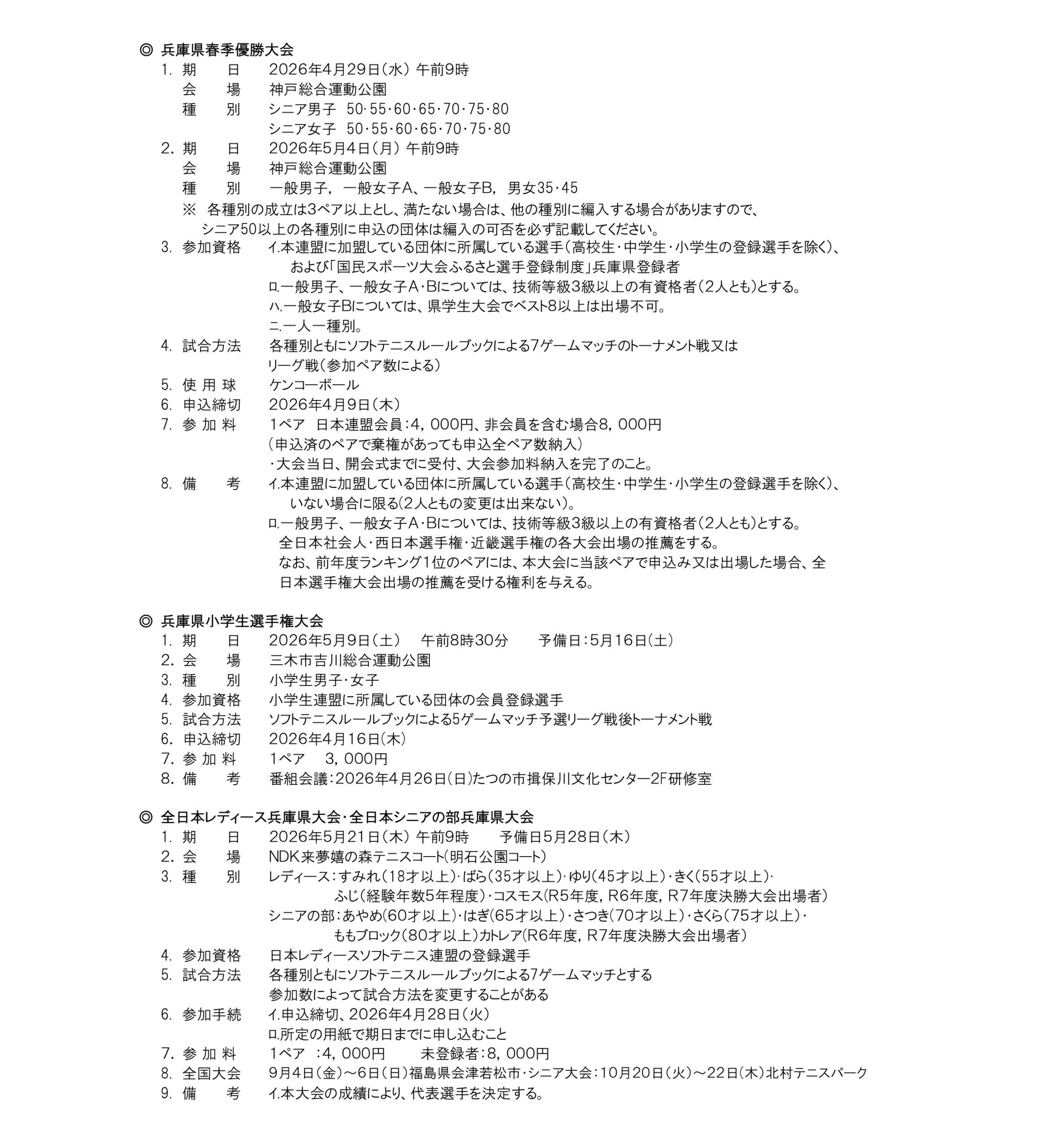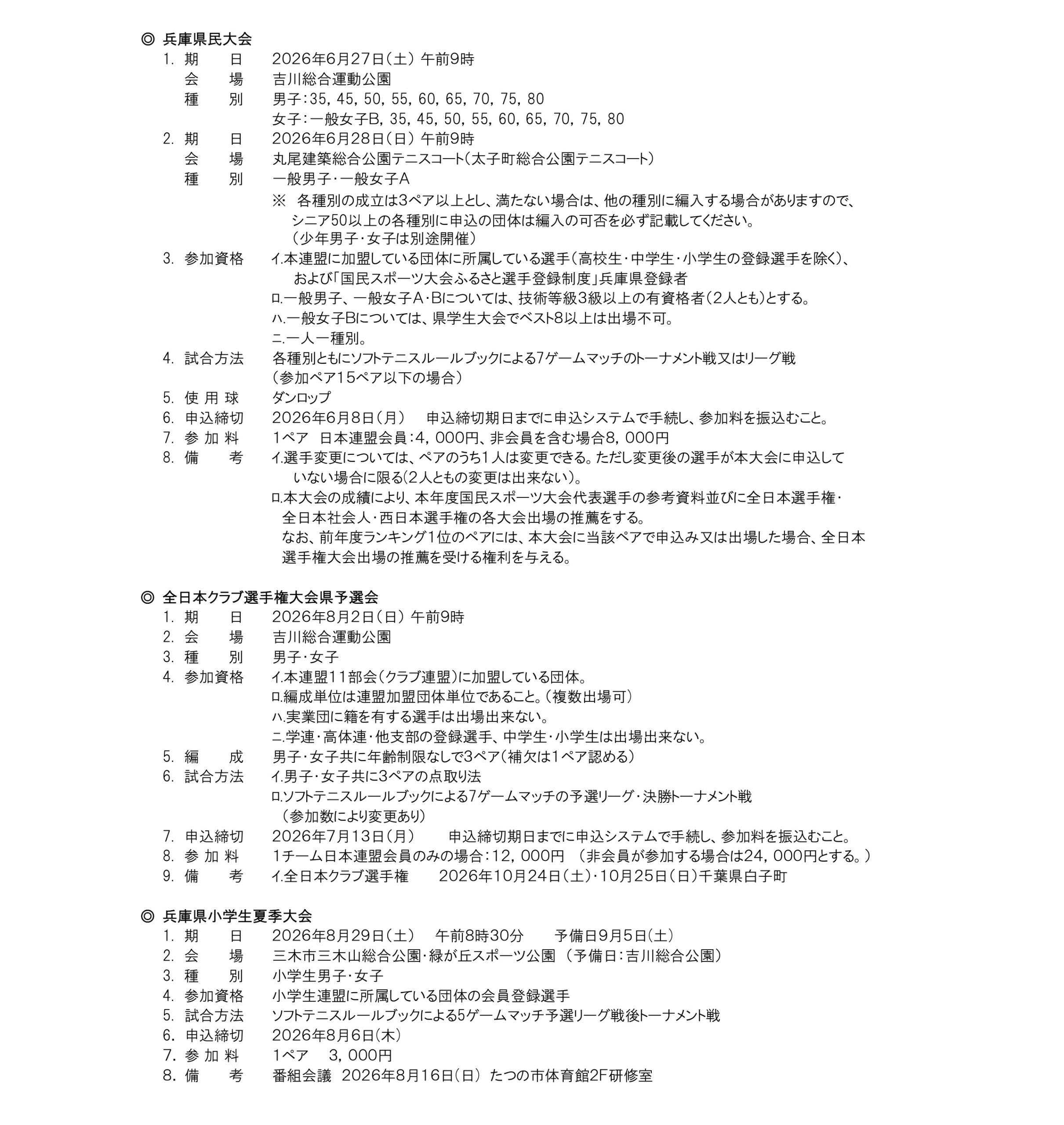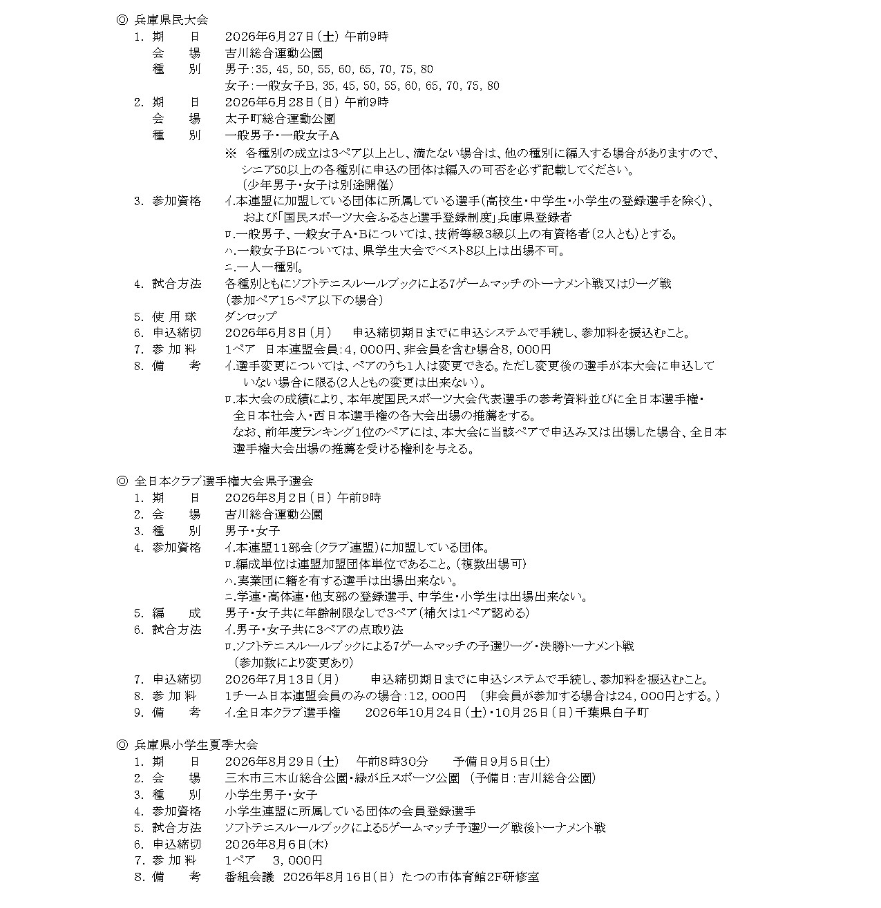 2026年度 兵庫県ソフトテニス連盟 大会要項