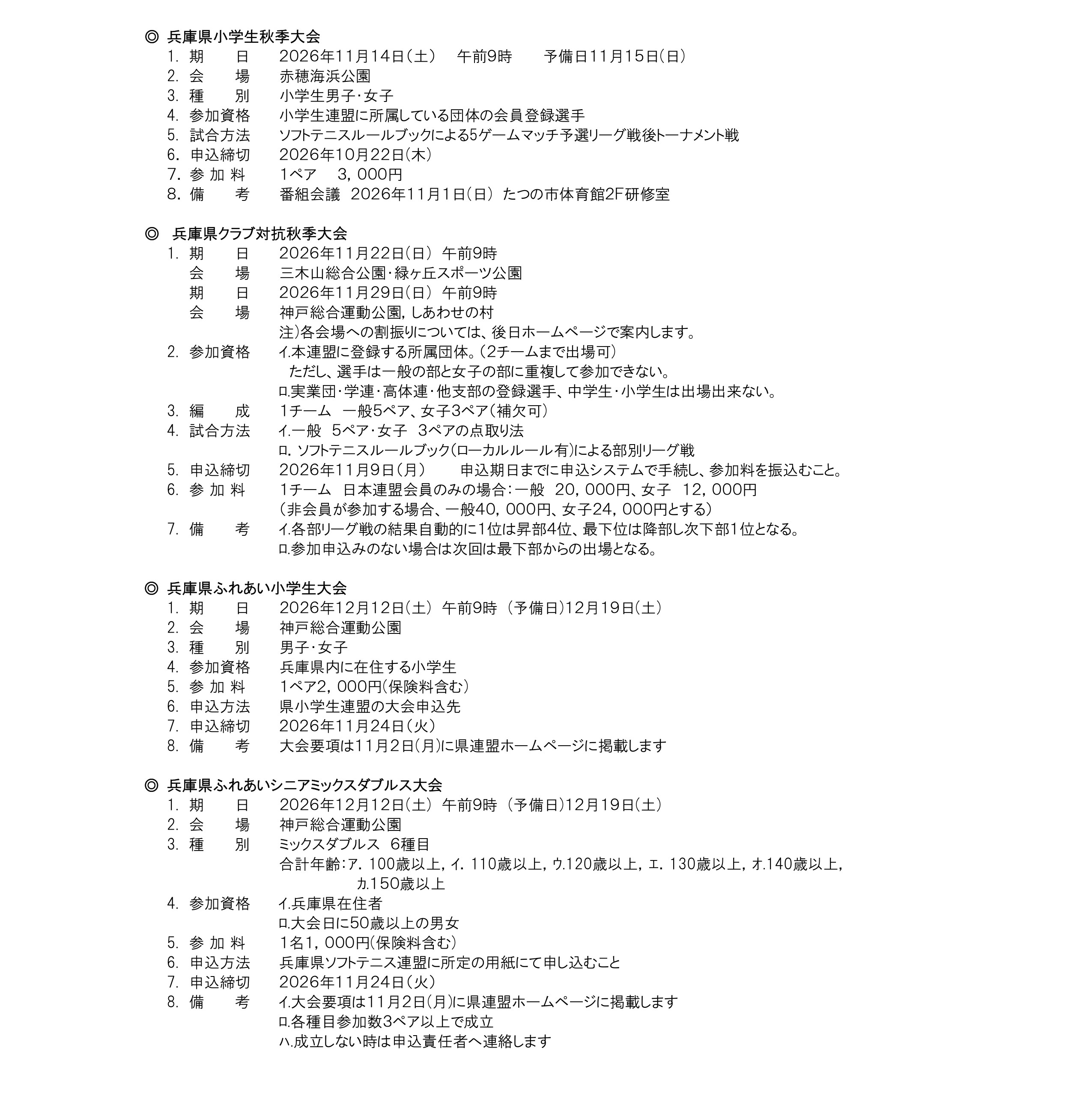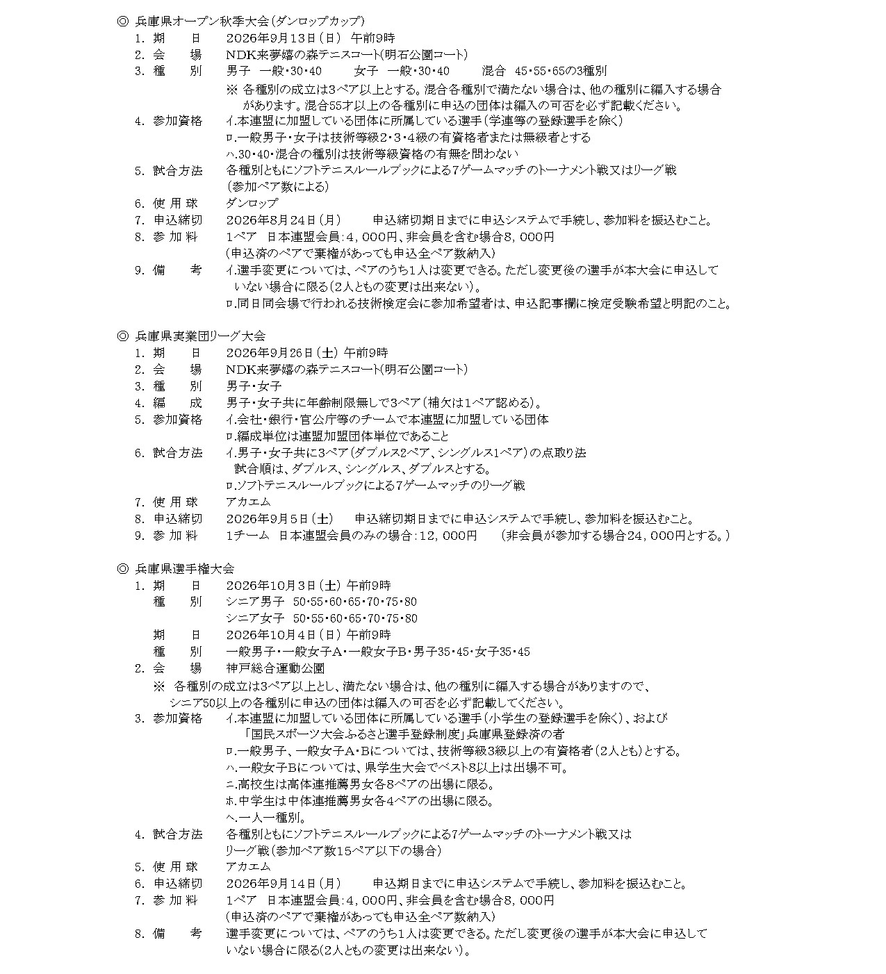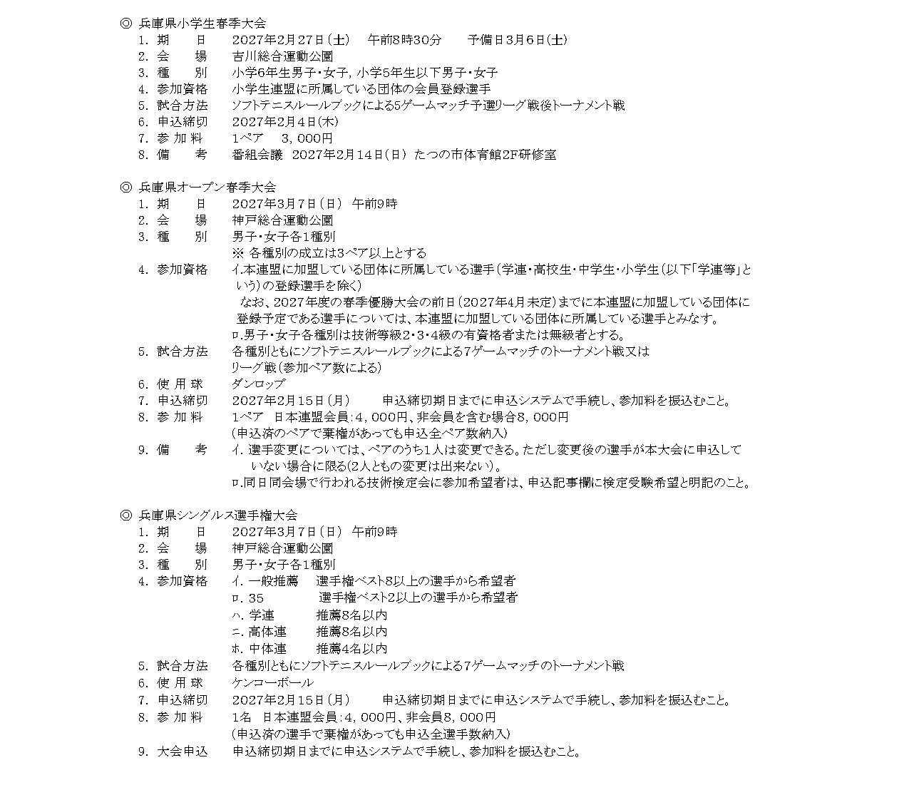 2026年度 兵庫県ソフトテニス連盟 大会要項