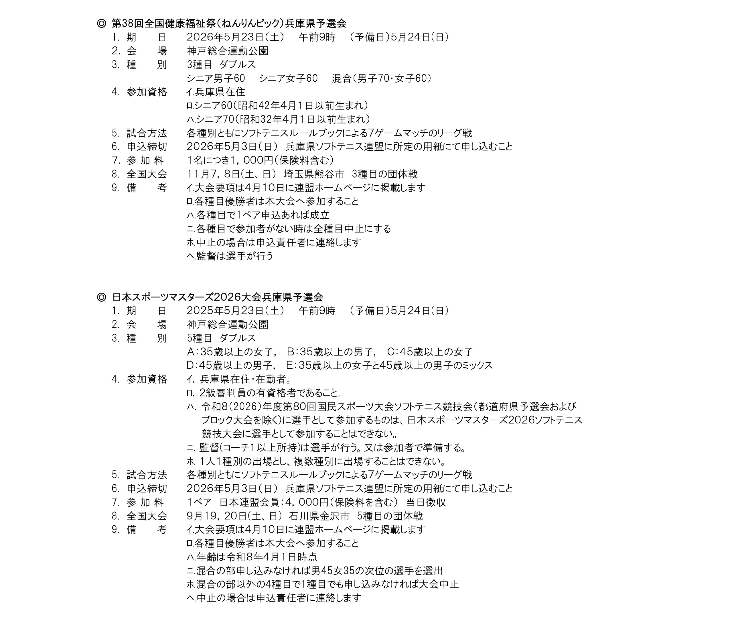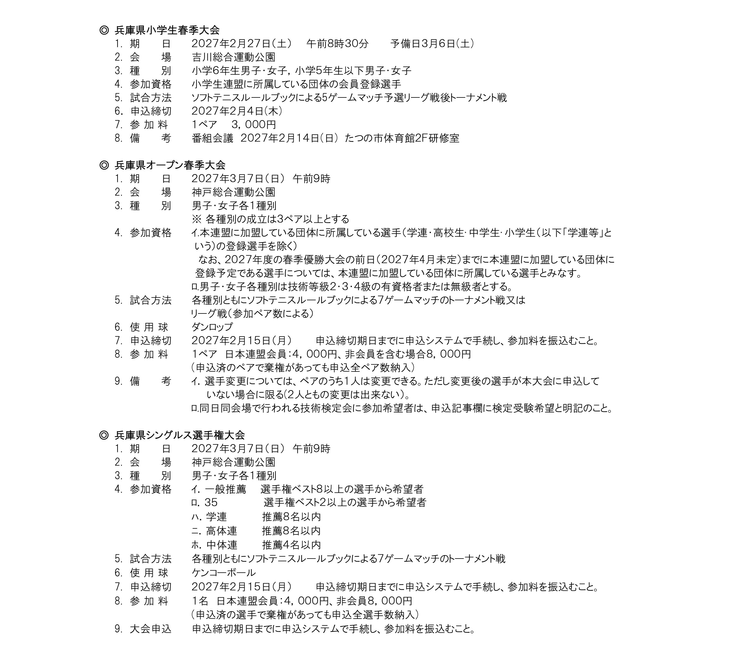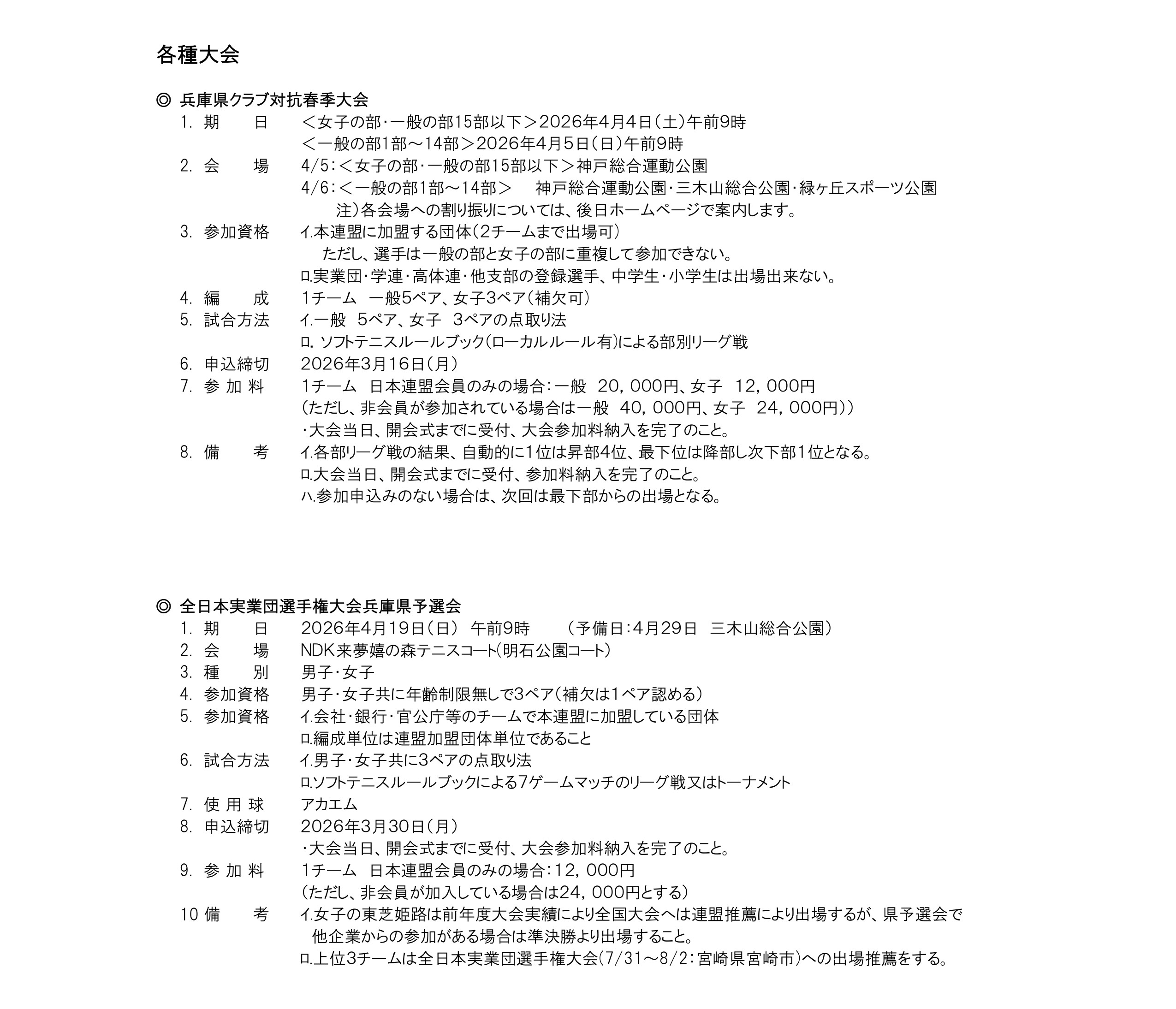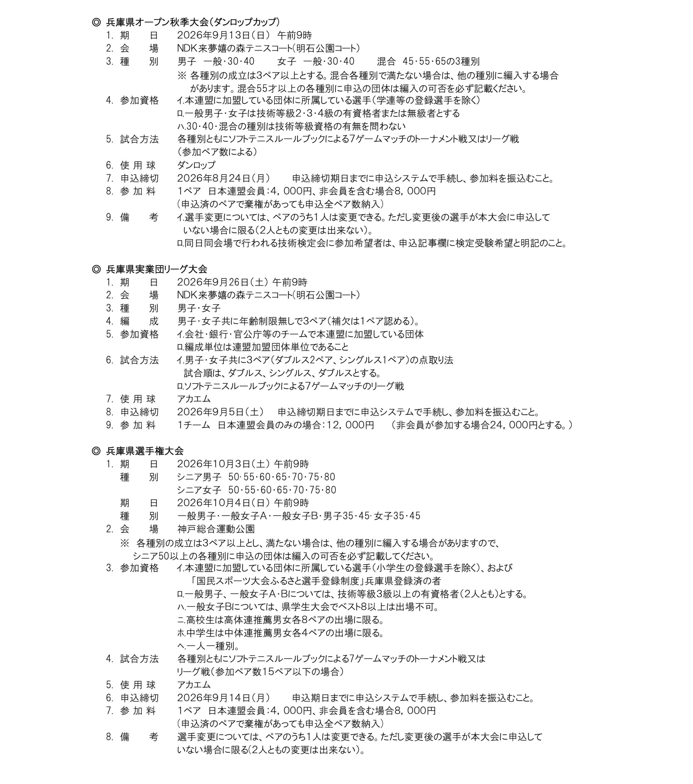 2026年度 兵庫県ソフトテニス連盟 大会要項