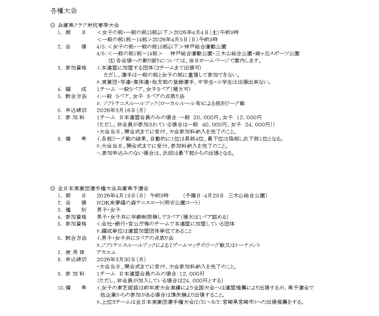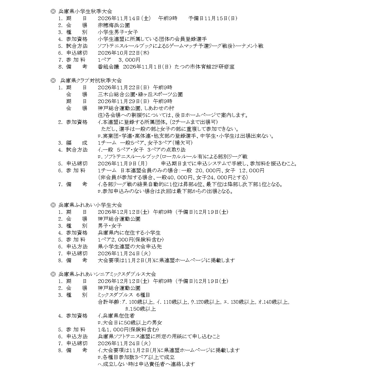 4. 2026年度 兵庫県ソフトテニス連盟 大会要項