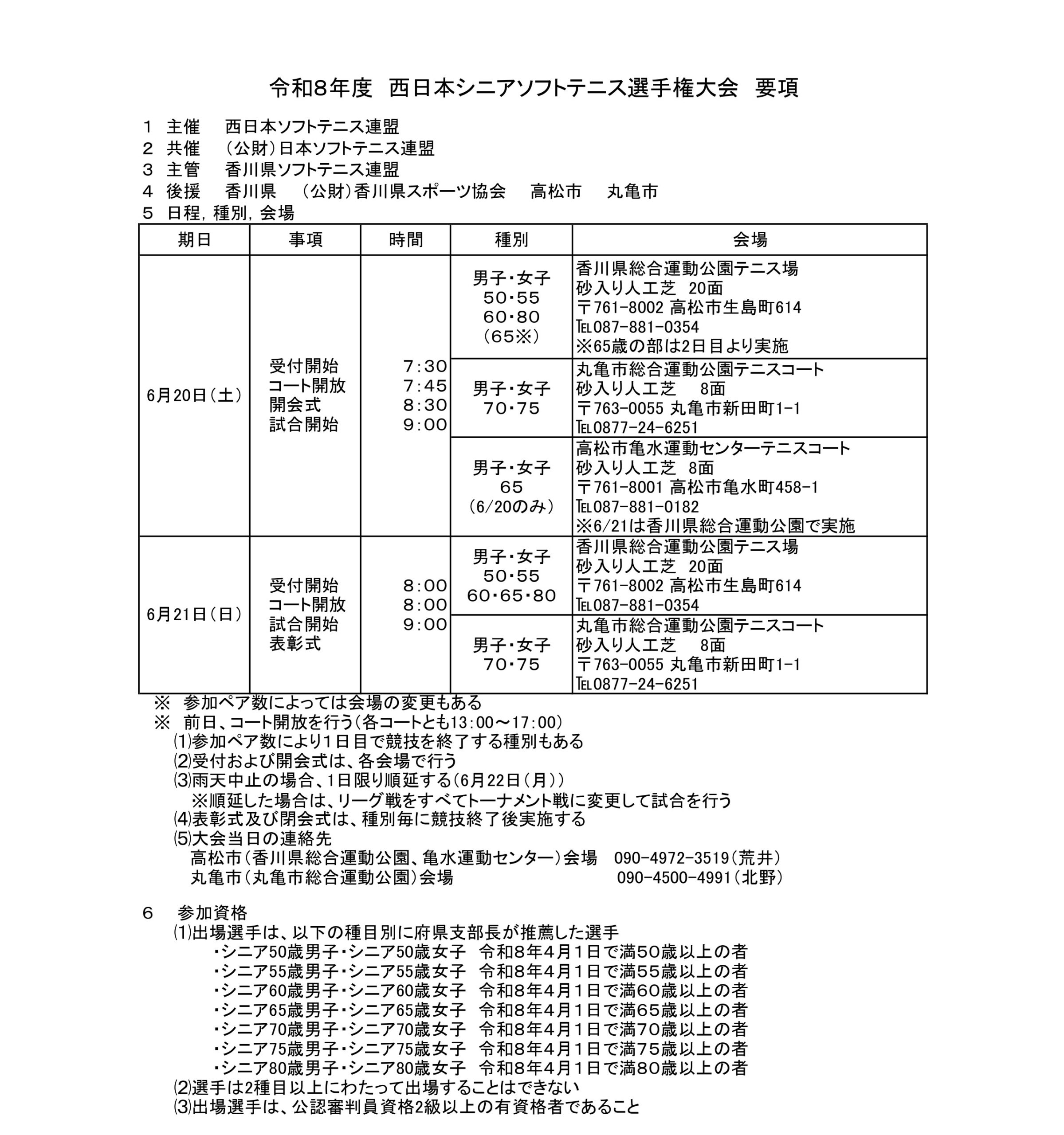 【4/17申込締切】令和8年度 西日本シニアソフトテニス選手権大会 要項